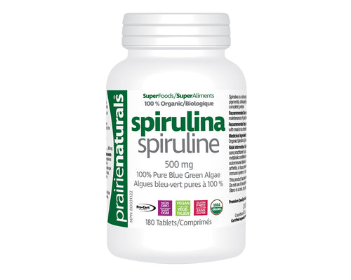 Prairie Naturals Organic Spirulina 500mg 180 Tablets