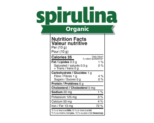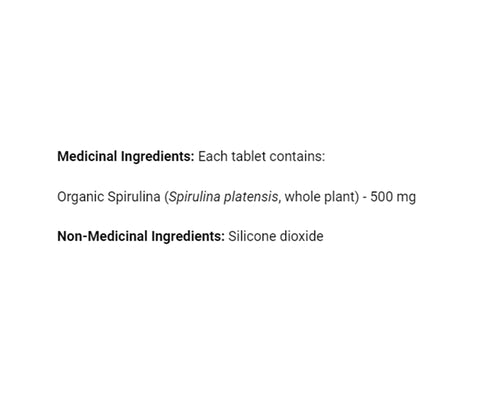 | Organic Spirulina (Spirulina platensis, whole plant) | 500 mg |