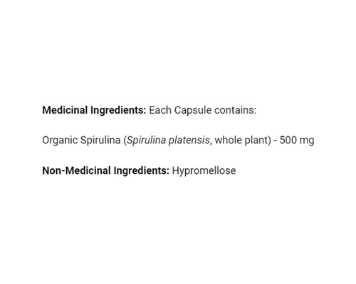 | Organic Spirulina (Spirulina platensis, whole plant) | 500 mg |